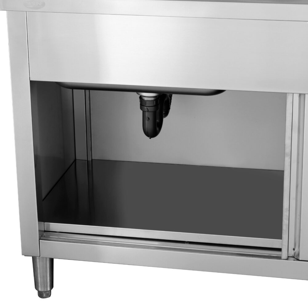 ארונית נירוסטה עם דלתות הזזה + משטח עבודה וכיור בצד ימין מידות כלליות: 1400/700/850 מ"מ, מידת הכיור: 500/400/250 מ"מ