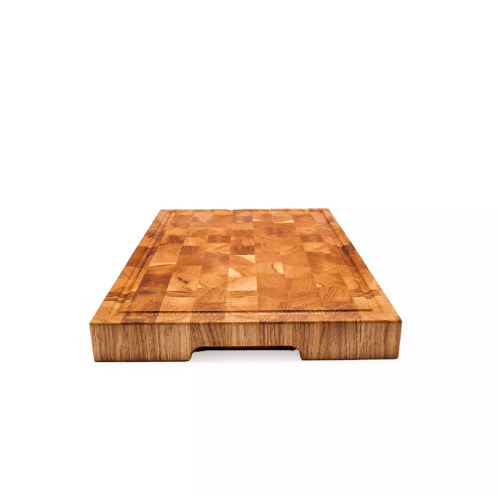 מלבני, בעל תעלות לניקוז נוזלים ומגרעות נשיאה. butcher endgrain