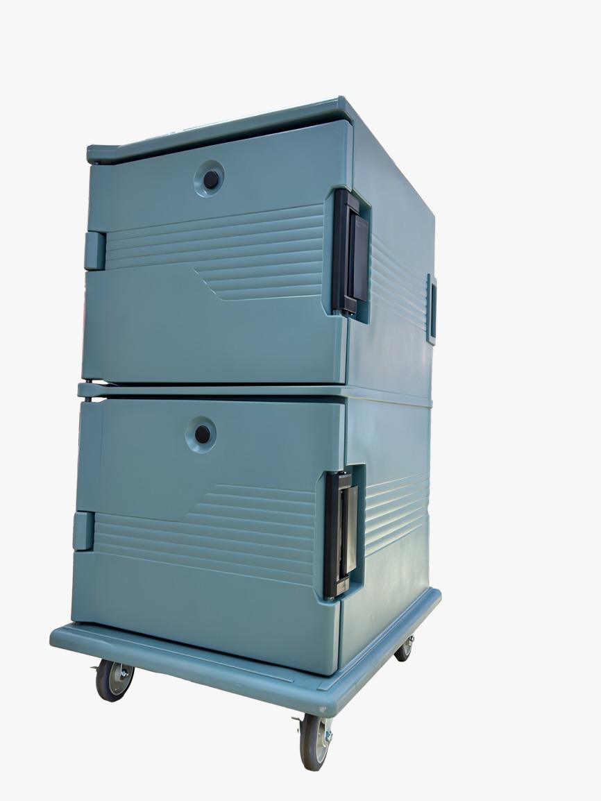 טרמופורט כפול ל-12 גסטרונום 2/1 עם עגלה – עיצוב מקצועי מבית נסליין בצבע אדום