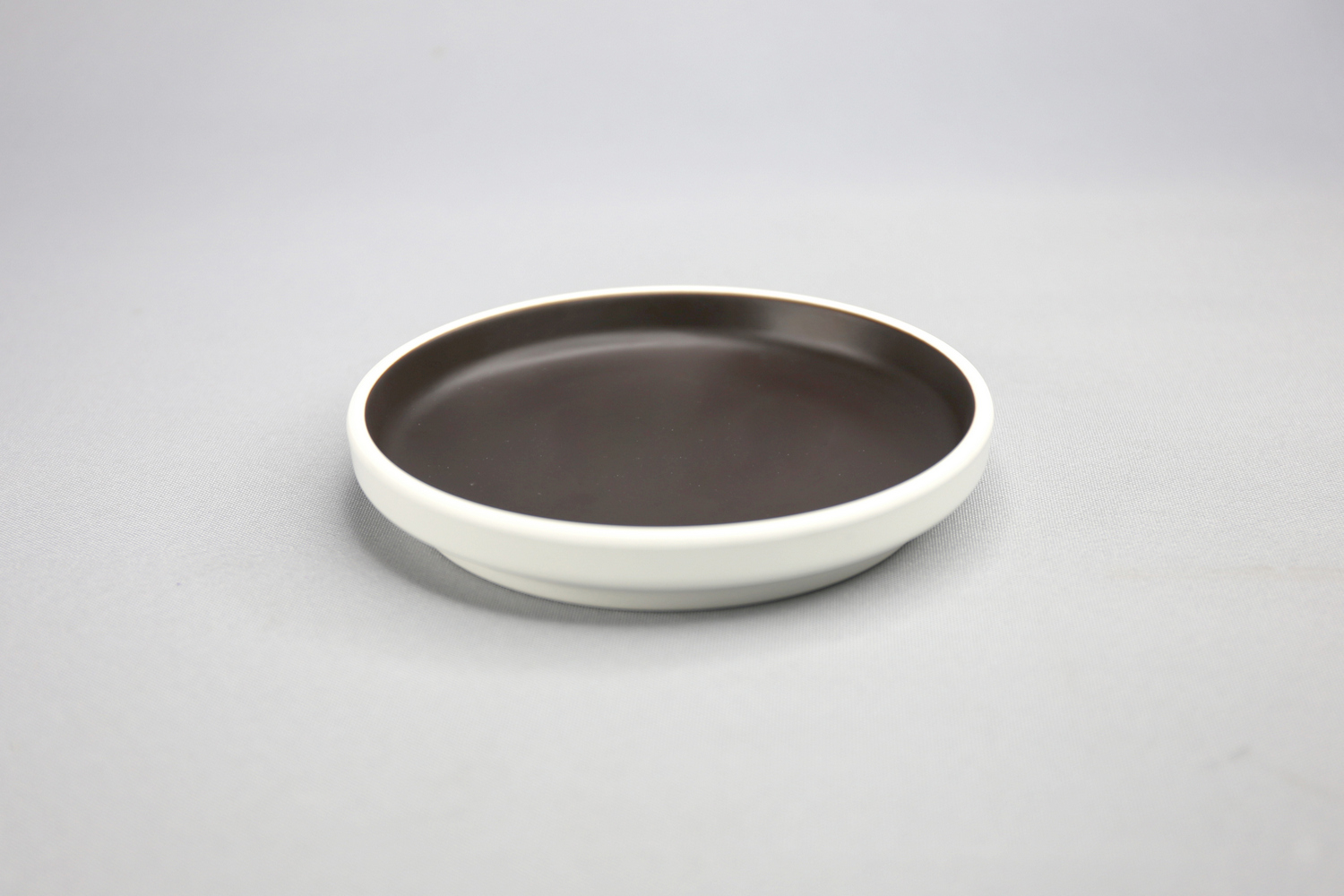 מגש עגול טאיג'י 15.2 ס"מ מלמין חום כהה לבן