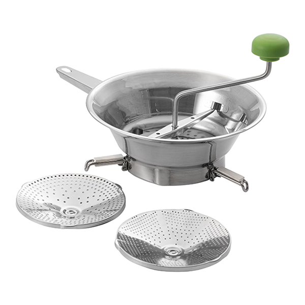 את חומר הגלם מניחים בקערה המחוררת ובעזרת ידית האחיזה מסובבים ומועכים.
