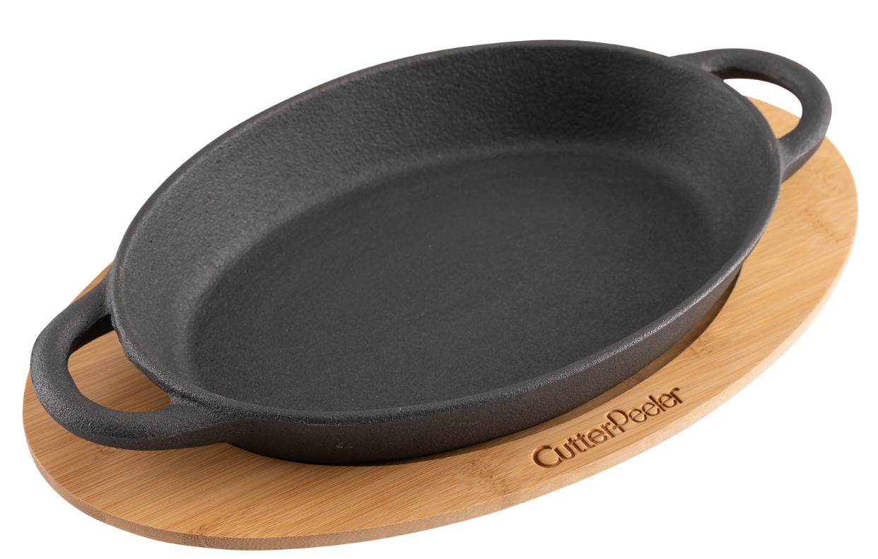 מחבת אובלית 2 ידיות יציקת ברזל עם תחתית במבוק 26X18 ס"מ
