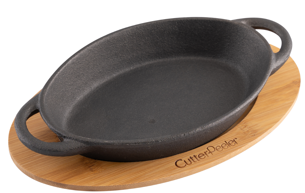 מחבת אובלית 2 ידיות יציקת ברזל עם תחתית במבוק 22X15 ס"מ