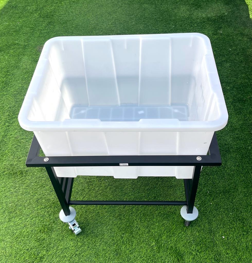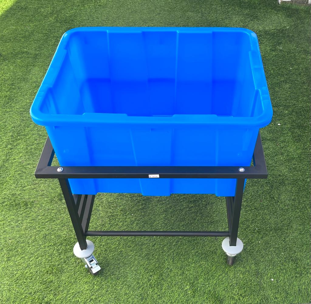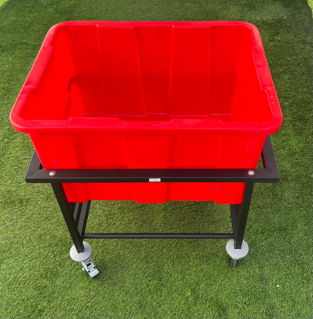 עגלה HD שחורה מחוזקת למיכל 130 ליטר חזקה ועמידה + מיכל 130 ליטר בצבעים: כחול, אדום, לבן.