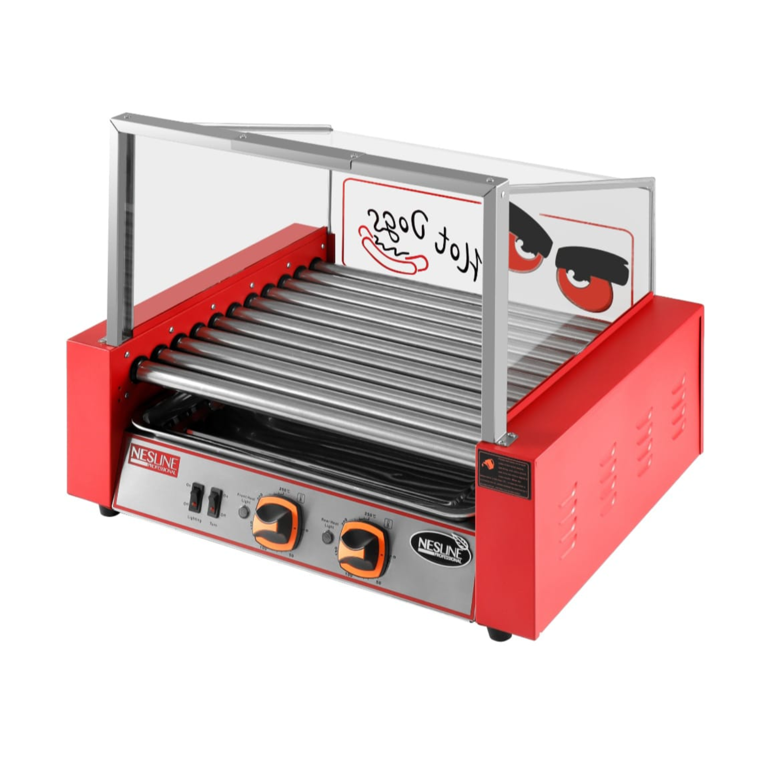 הרולים של מכונת הנקניקיות נמצאים כל הזמן בתנועה ובאפשרותכם לווסט את החום לבישול או שמירה על חום.