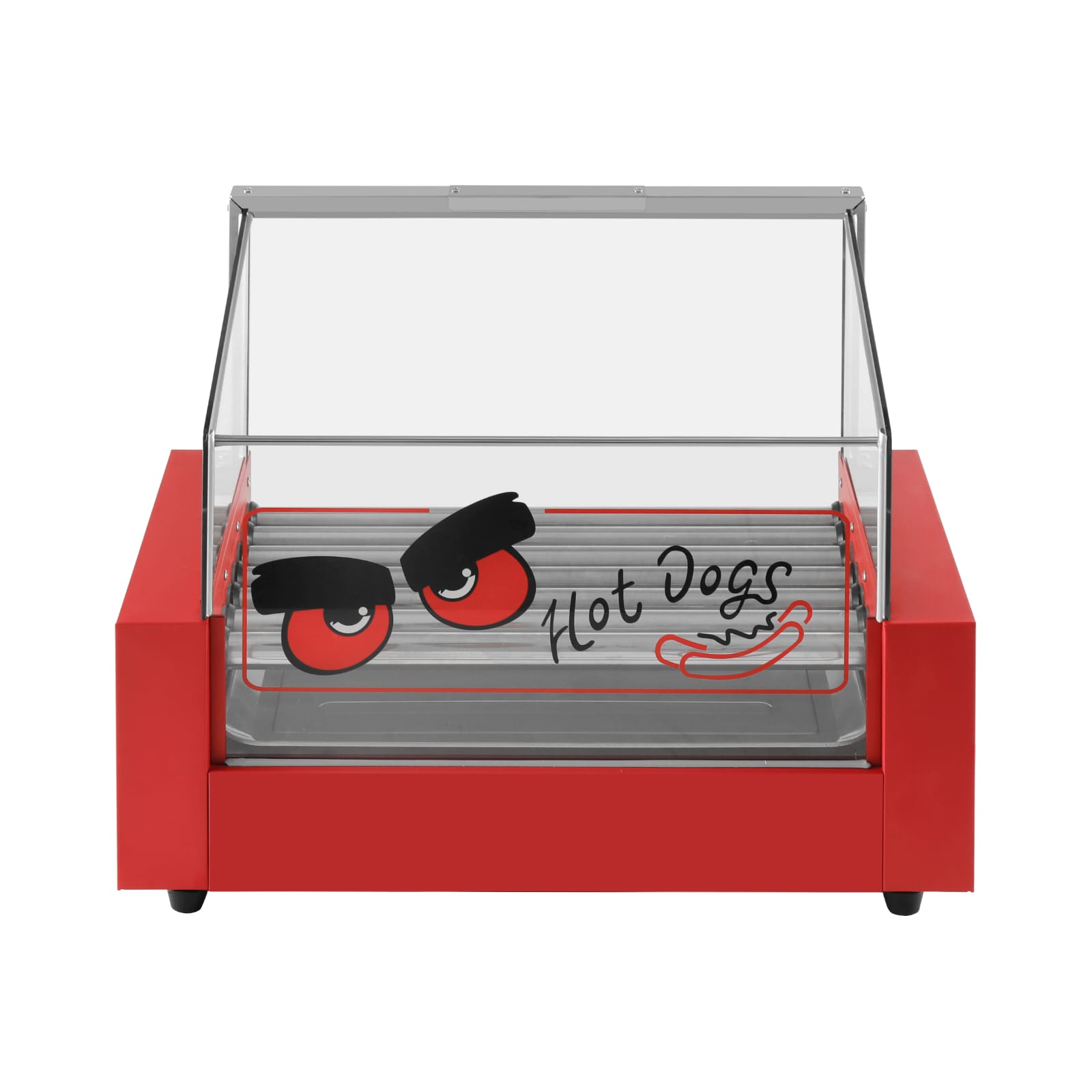 מכונת הנקניקיות שלנו שומרת על חום הנקניקיה ומפזרות את החום באופן שווה בין כל הרולים. הרולים של מכונת הנקניקיות נמצאים כל הזמן בתנועה ובאפשרותכם לווסט את החום לבישול או שמירה על חום. המכשיר כולל כיסוי זכוכית.