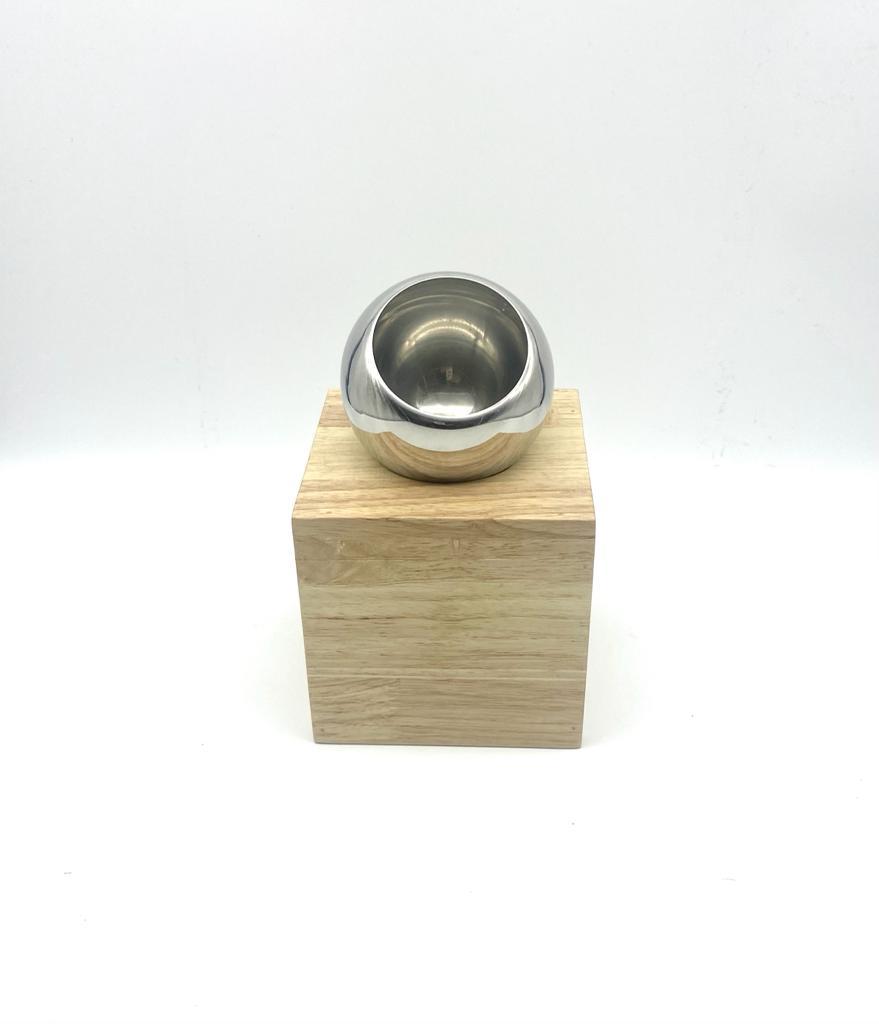 מעמד עץ מעוצב ועליו כדור נירוסטה מלוטש בחיתוך לייזר במידה 13.5 ס"מ , מתאים להגשת רטבים/ממרחים/תה/קפה/סוכרים/תוספות ועוד…