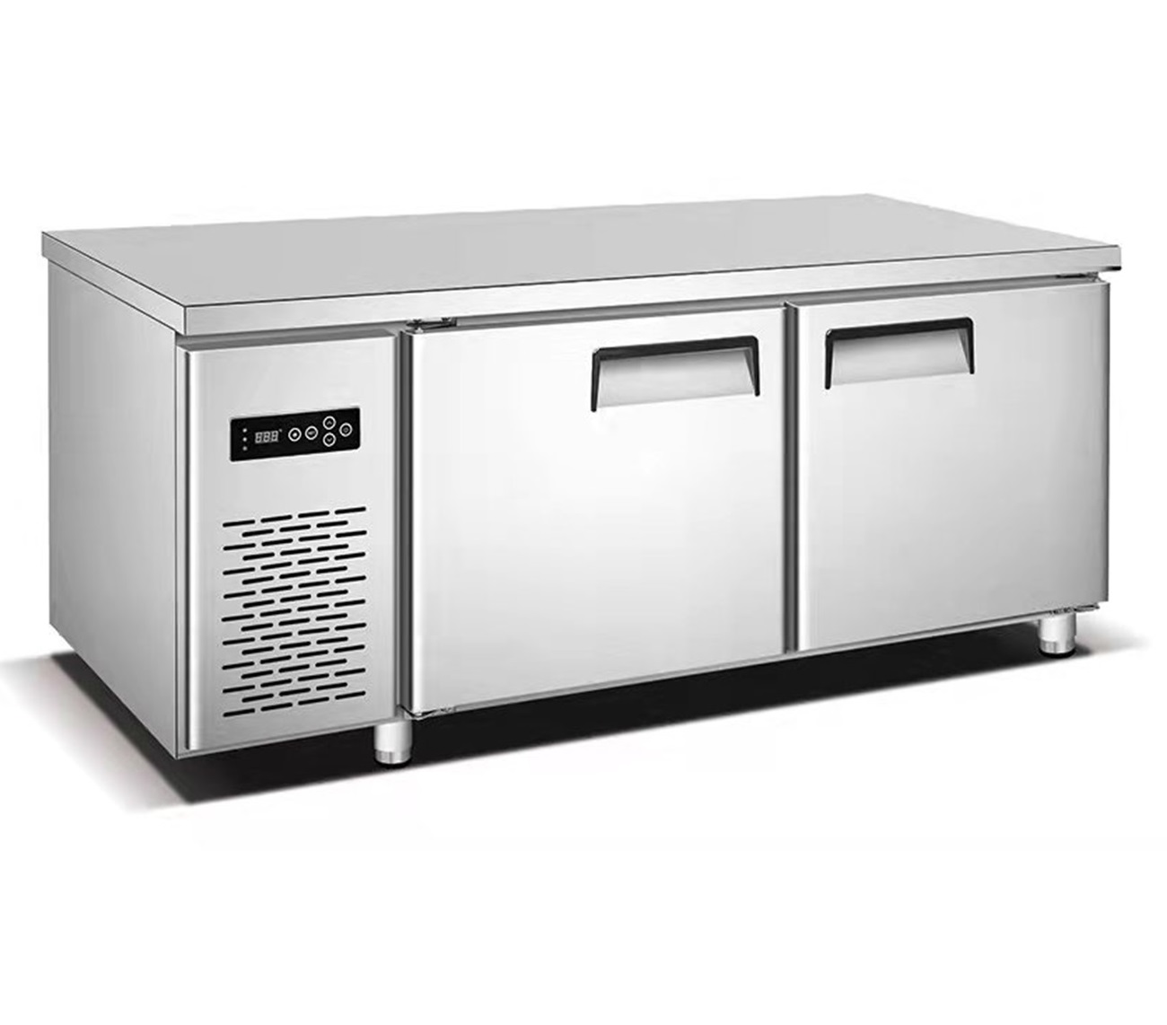 מקרר דלפק בעל 2 דלתות העשוי נירוסטה, בעל משטח עבודה. קיבולת: 250 ליטר, מידות: 1500X800X800 מ"מ, בעל קירור בטכנולוגיית R134a המתקדמת, הספק: 180W, משקל: 66 ק"ג, טמפ': 0-10 מעלות