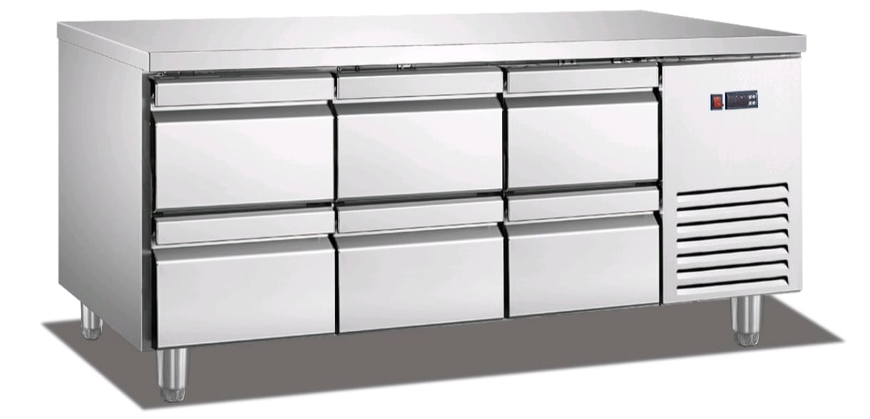 מקרר דלפק נירוסטה 6 מגירות 1800/700/850 מ"מ, 400W, מעלות 2-8