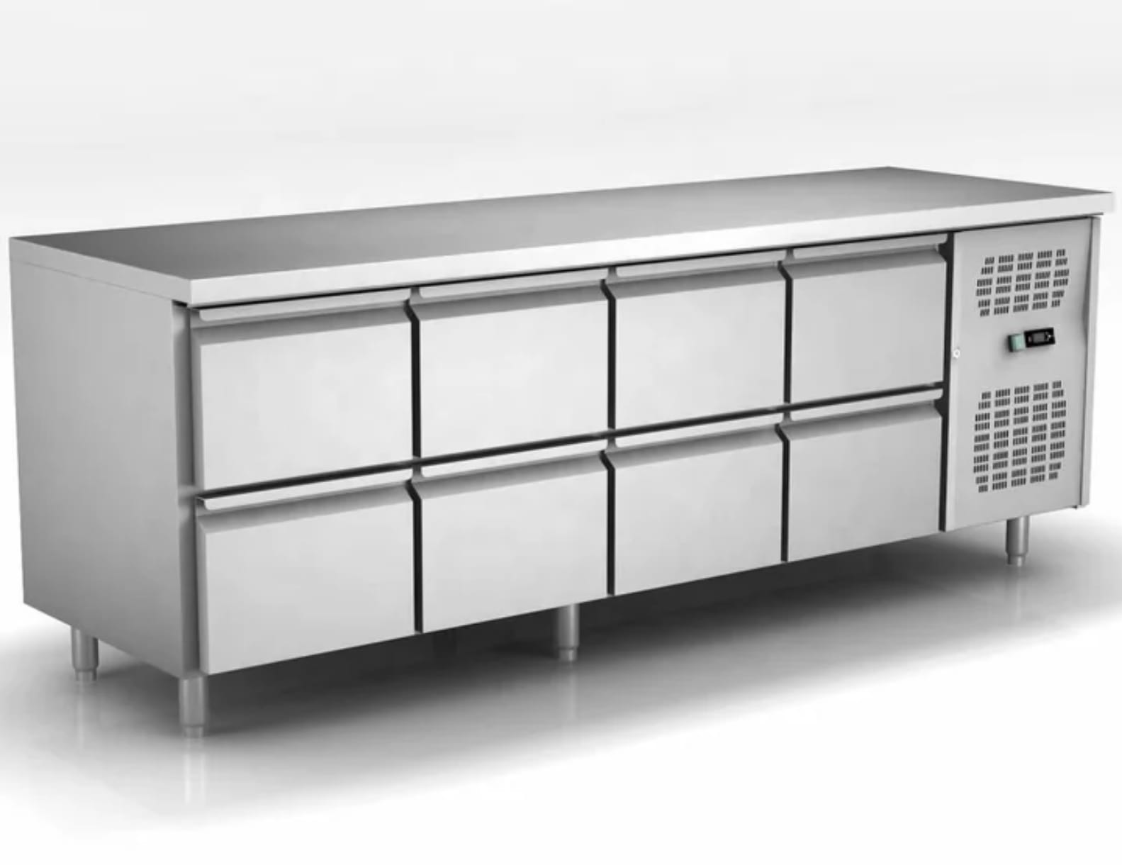 מקרר דלפק נירוסטה 8 מגירות נמוך 220 ס״מ