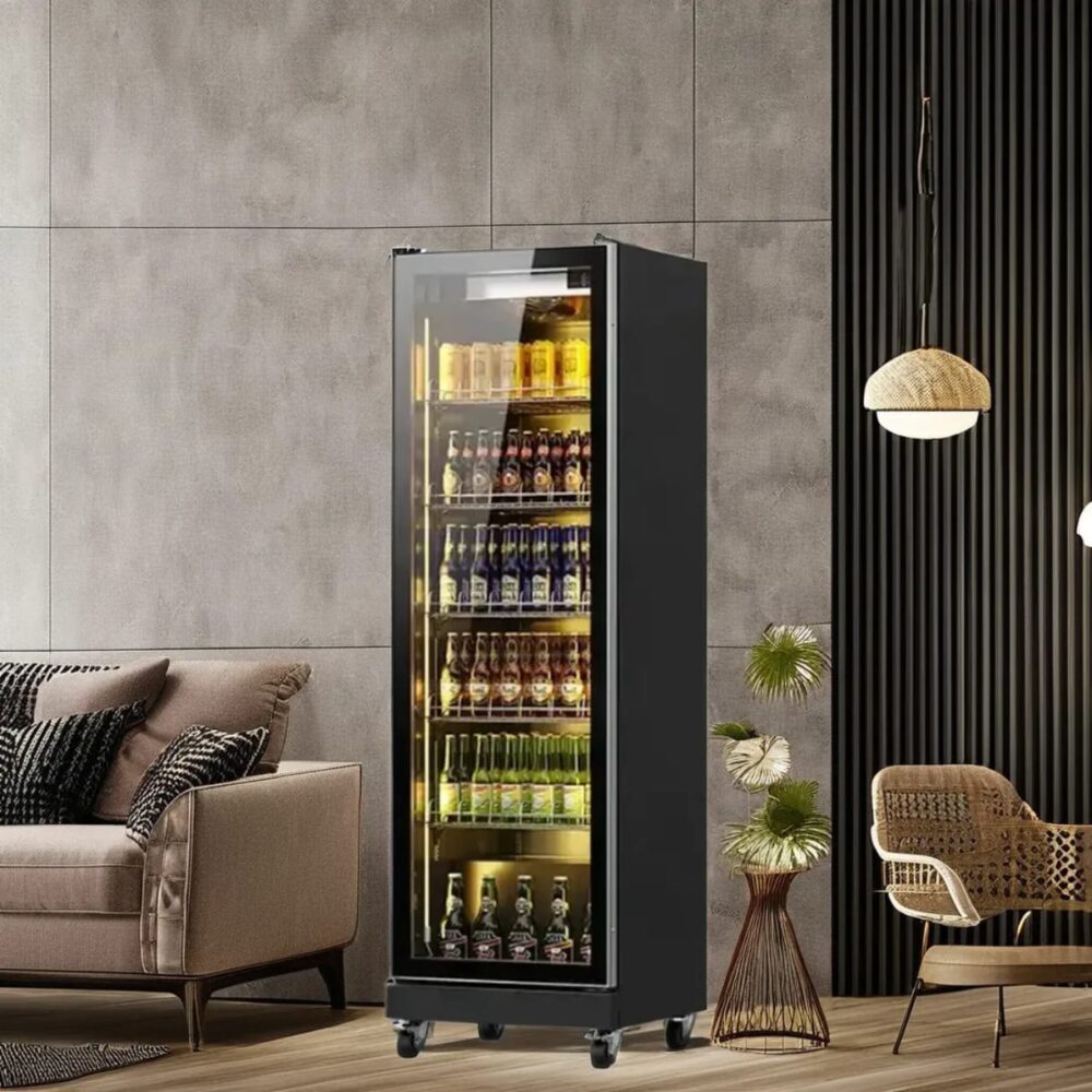 מקרר תצוגה ושתייה עומד שחור דלת זכוכית פלזמה 387 ליטר נסליין