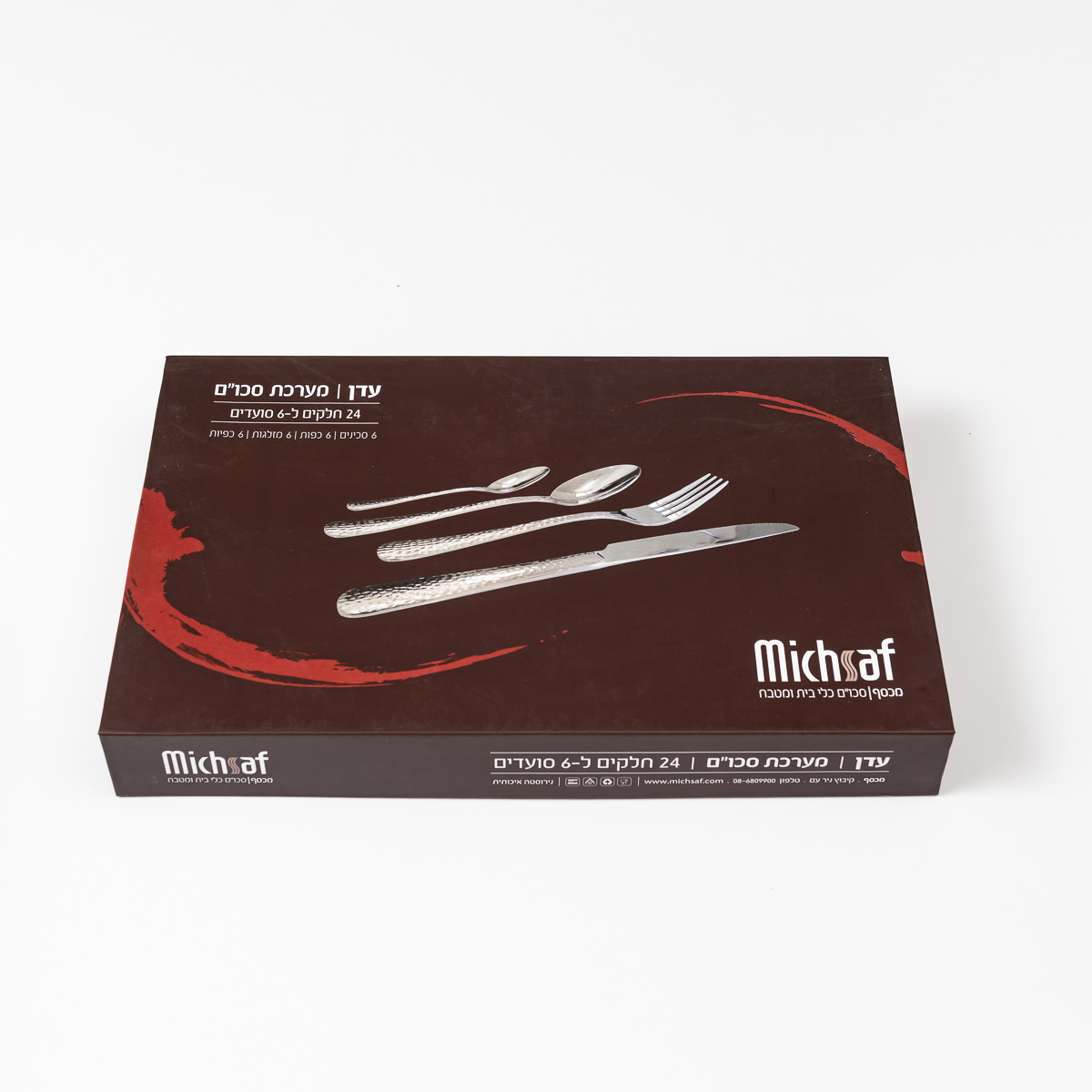 סט סכו"ם 24 חלקים דגם עדן באריזת מתנה ל – 6 סועדים כולל: סכין, מזלג, כף וכפית * 6 יחידות מכ"א.