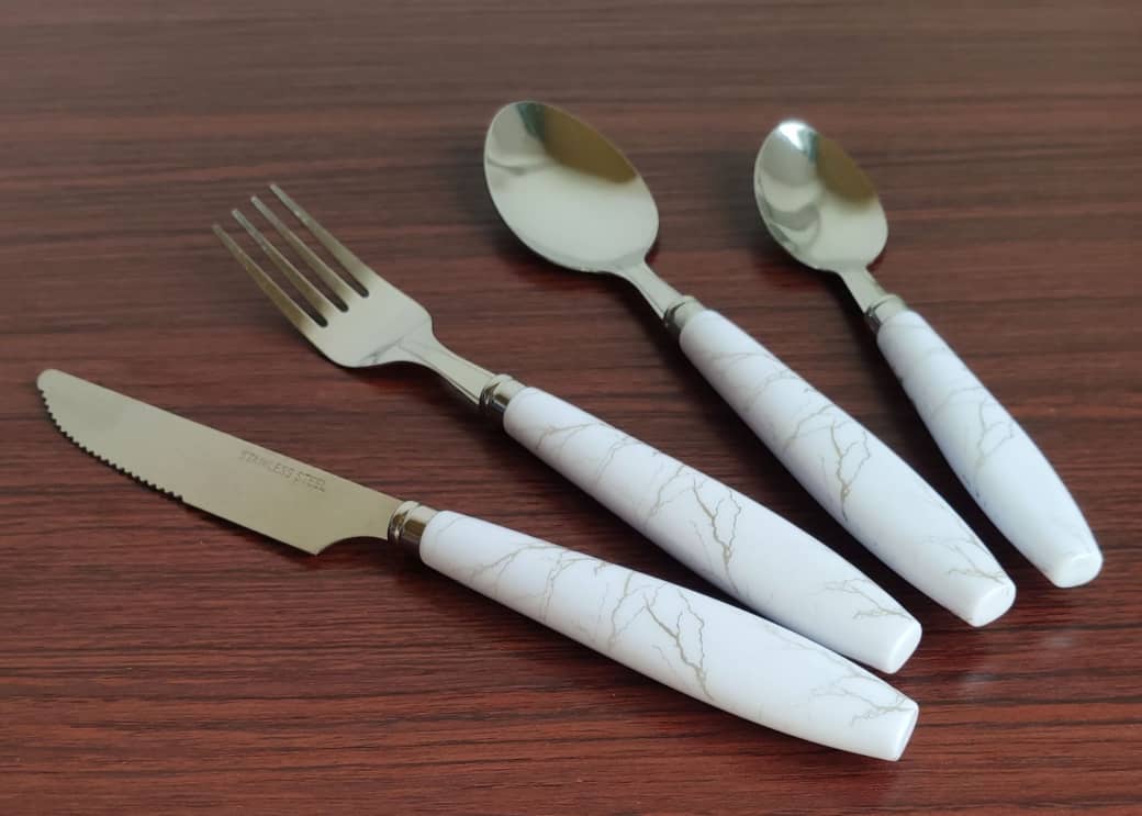 סט סכו"ם 24 חלקים ידית פלסטיק לבן דמוי שיש