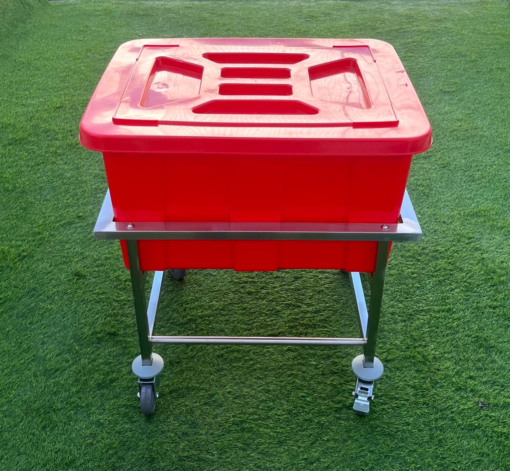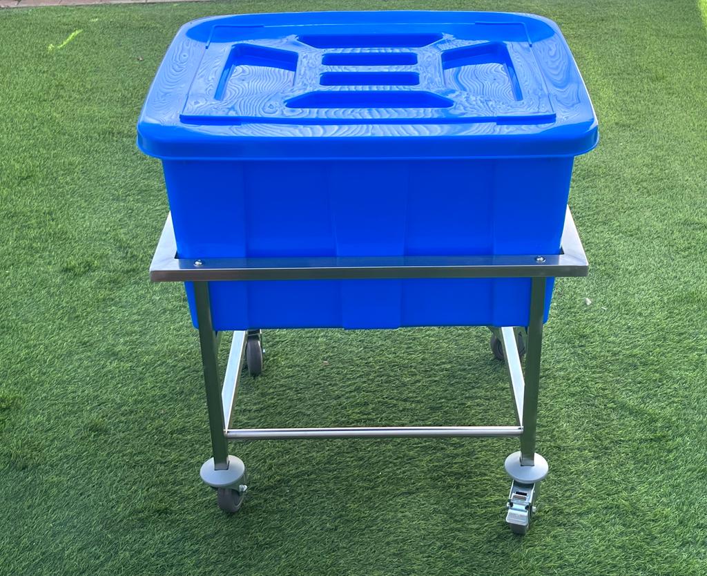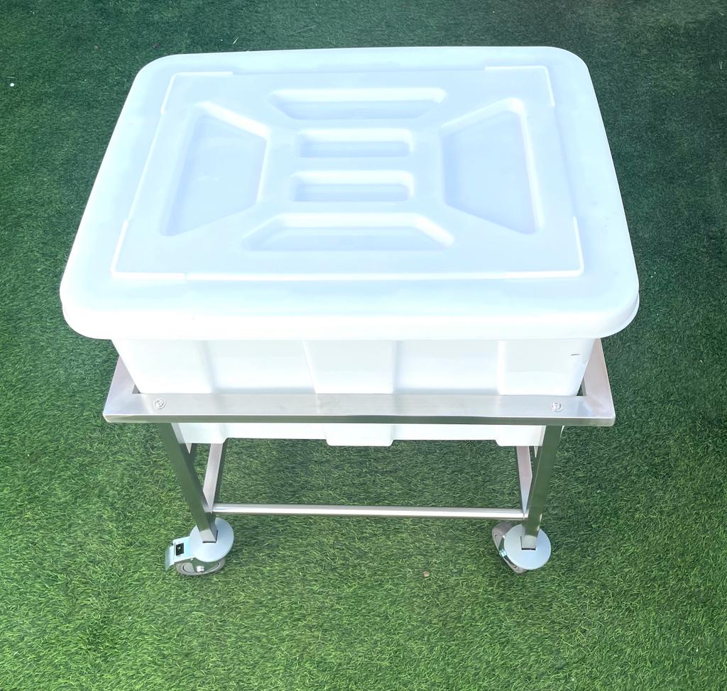 עגלת נירוסטה + מיכל 130 ליטר *העגלה מגיעה מפורקת ודורשת הרכבה