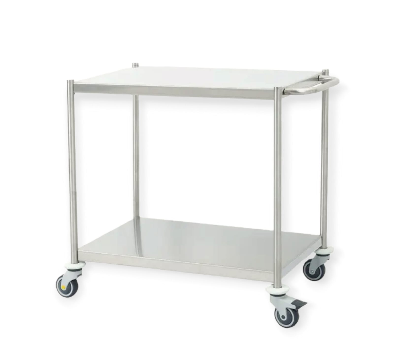 עגלת נירוסטה עם גלגלים במידות 120/60 ס"מ גובה 90 ס"מ בעלת ידית דחיפה ומדף תחתון