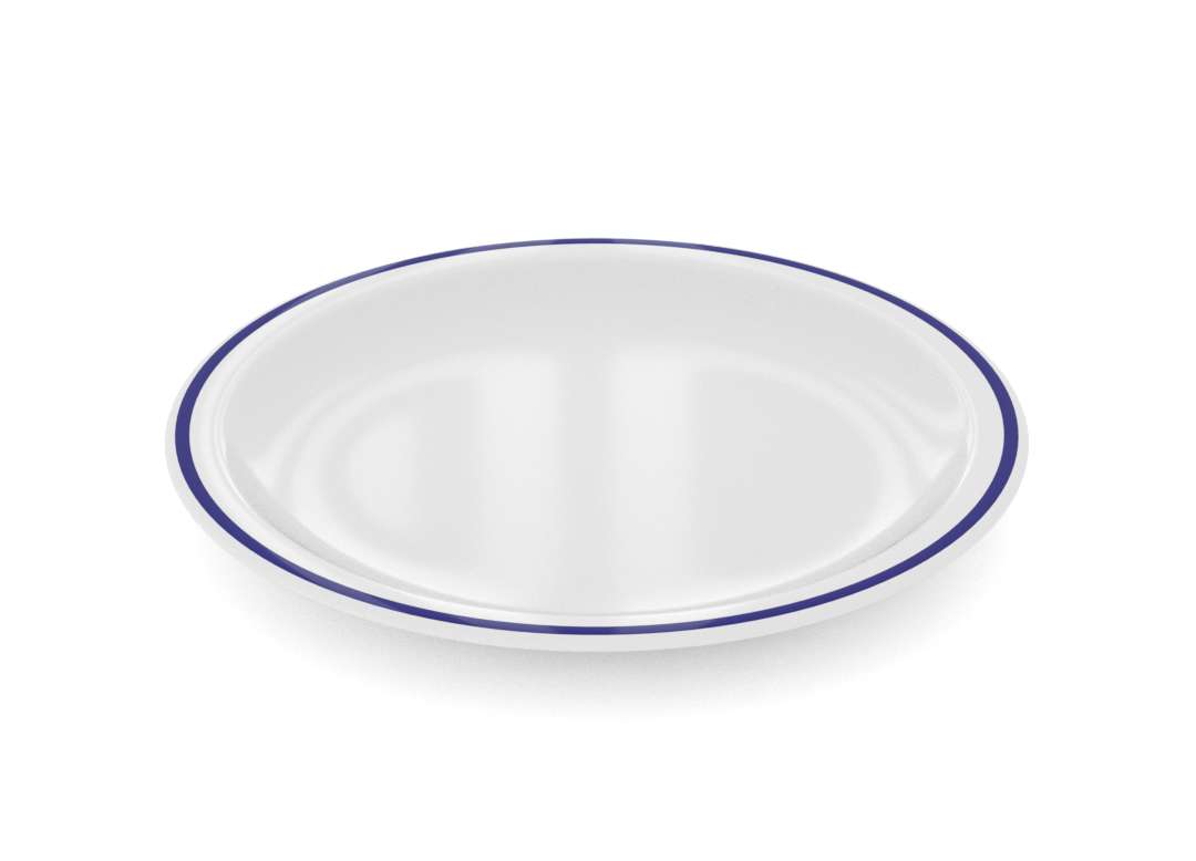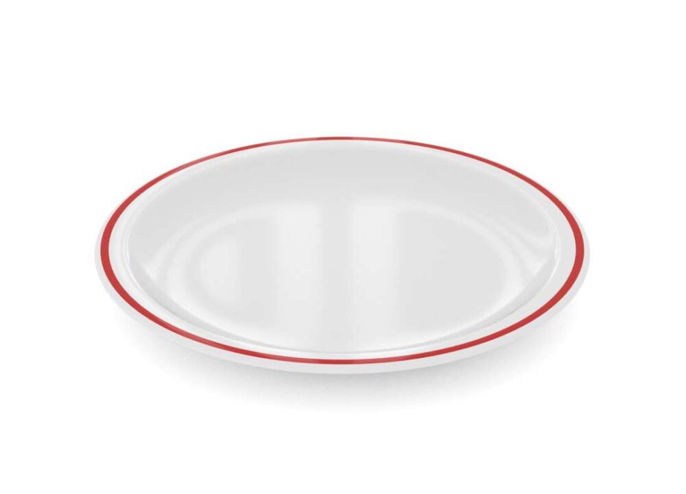 צלחת עשויה מלמין , עם פס דק צבעוני בדפנות הצלחת, קיימת בצבעים : כחול כהה, אדום כהה. פריט זה נמכר במארז של 72 יח'.