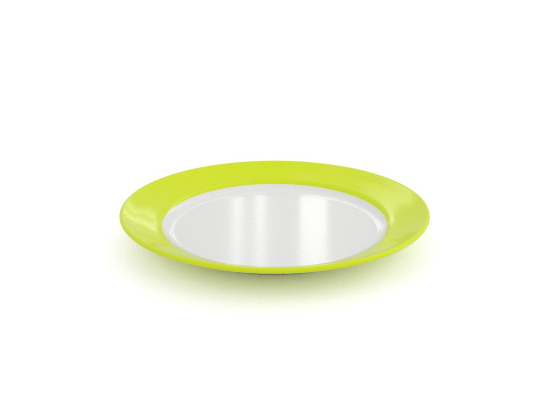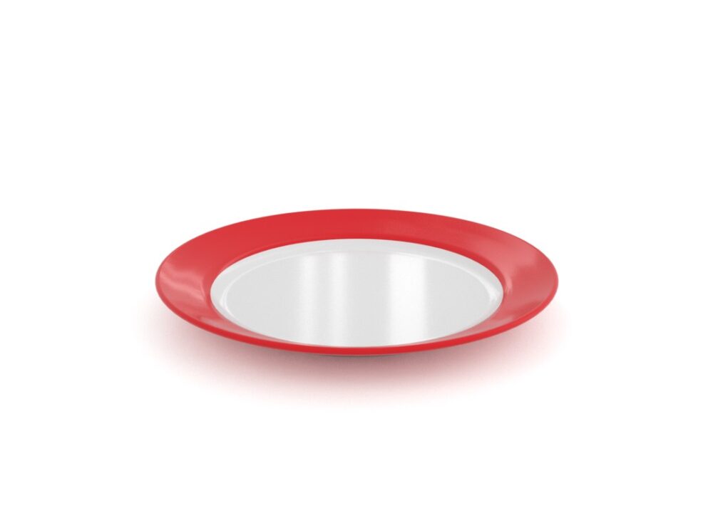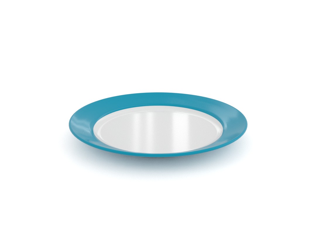 צלחת עשויה מלמין , עם פס רחב צבעוני בדפנות הצלחת, קיימת בצבעים : טורקיז רובי, כחול כהה, ירוק טרופי, ורוד רובי, כתום רובי, אדום רובי. פריט זה נמכר במארז של 24 יח' בלבד