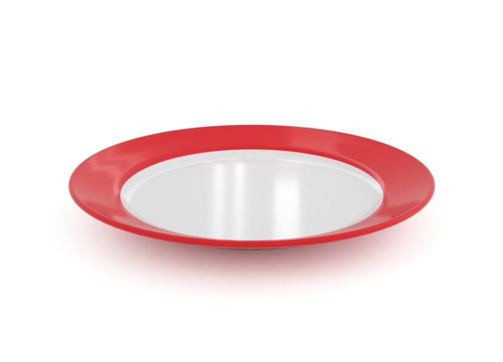 צלחת עשויה מלמין , עם פס רחב צבעוני בדפנות הצלחת, קיימת בצבעים : טורקיז רובי, כחול כהה, ירוק טרופי, ורוד רובי, כתום רובי, אדום רובי. פריט זה נמכר במארז של 24 יח' בלבד