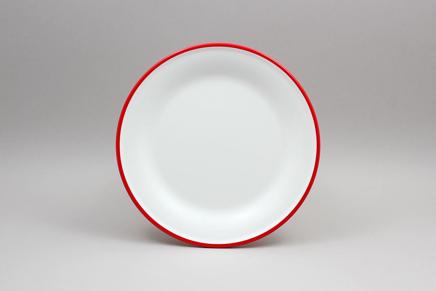 צלחת 23 ס"מ דמוי אמייל לבן פס אדום מלמין