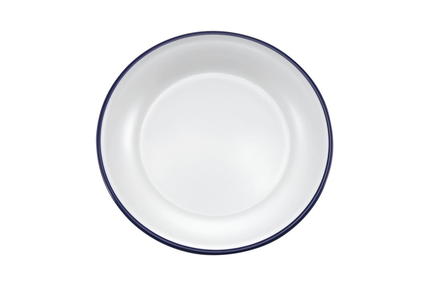 צלחת 23 ס"מ דמוי אמייל לבן פס כחול מלמין