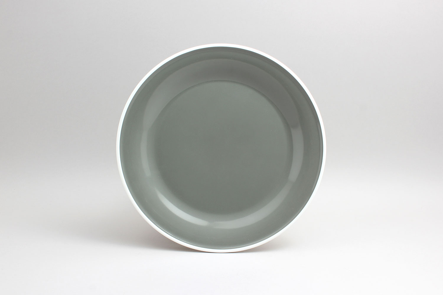 צלחת 27 ס"מ דמוי אמייל אפור פס לבן מלמין