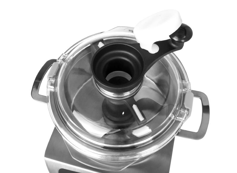 מבנה: גוף מלא מנירוסטה איכותי, סכין חיתוך מפלדת קאטלרי, מכסה שקוף עם פתח הוספת מרכיבים במהלך פעולה, מתג ביטחון (micro-switch), אביזר גרירה (“scraper”) לתוצאה אחידה.