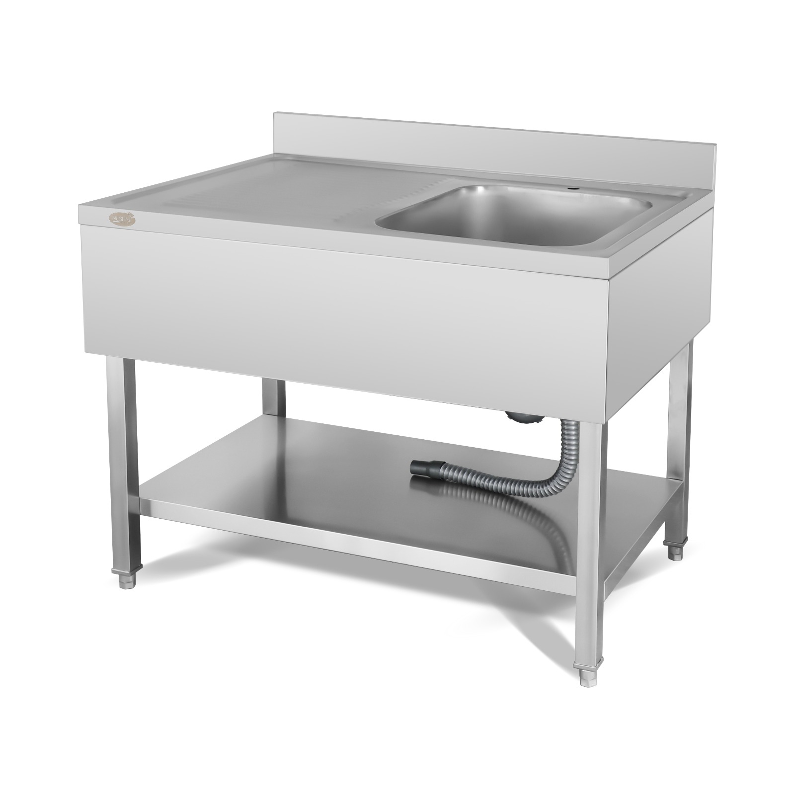 שולחן עבודה נירוסטה 1400/700/850 מ"מ עם כיור ימין במידות: 500/500/250 מ"מ נסליין