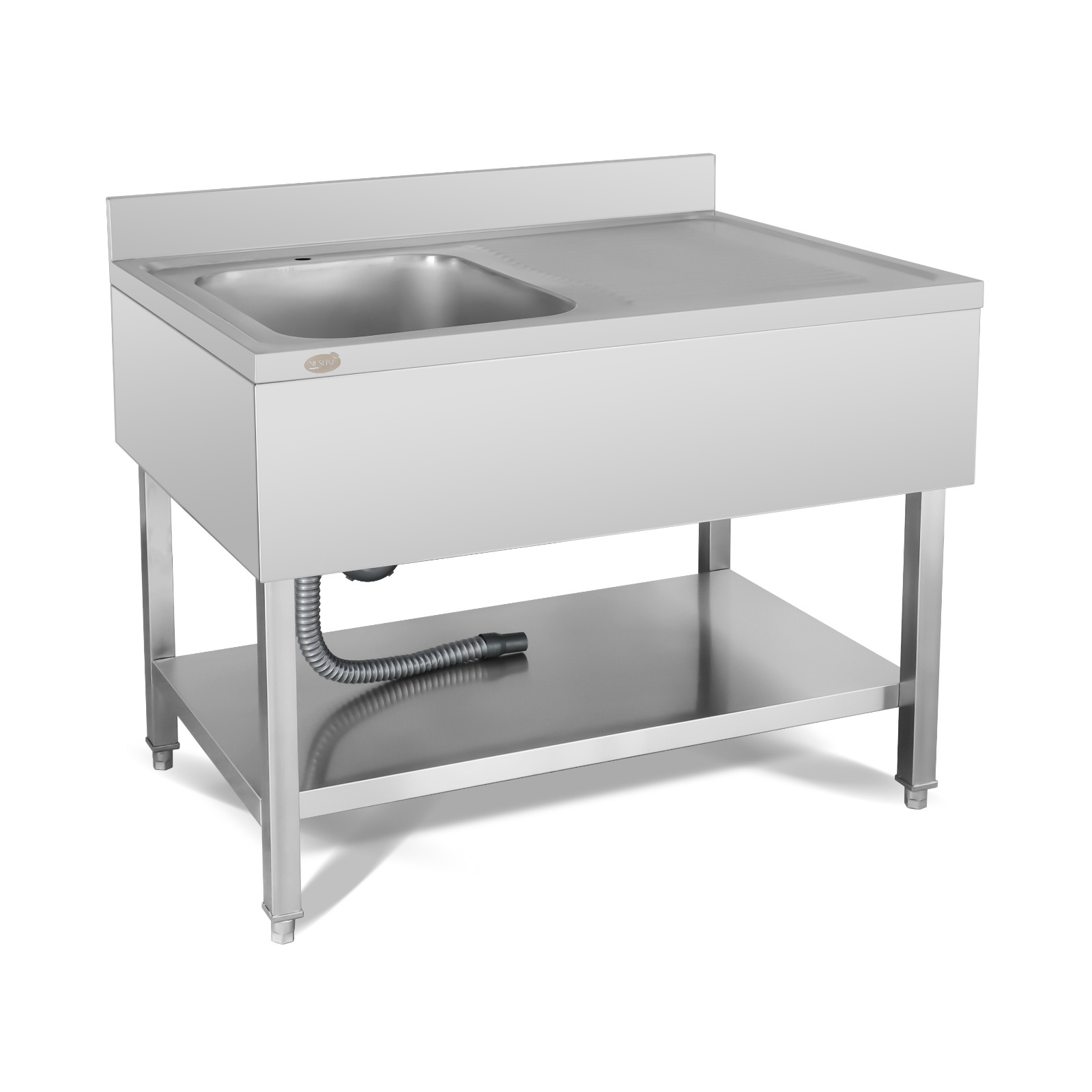 שולחן עבודה נירוסטה 1600/700/850 מ"מ עם כיור שמאל במידות: 500/500/250 מ"מ נסליין