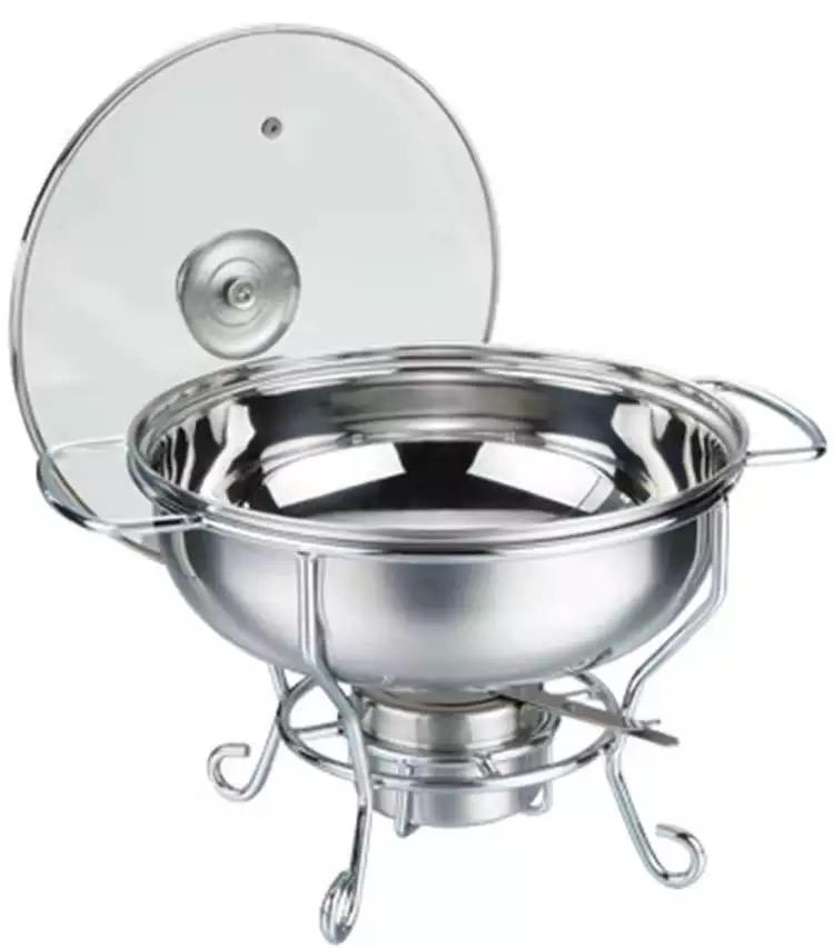שפינגדיש נירוסטה עם מכסה זכוכית הכולל קערת מים וקערה להגשה המזון, כולל מיתלה להנחת המכסה, נפח: 8 ליטר, מתאים לשימוש מקצועי וביתי כאחד